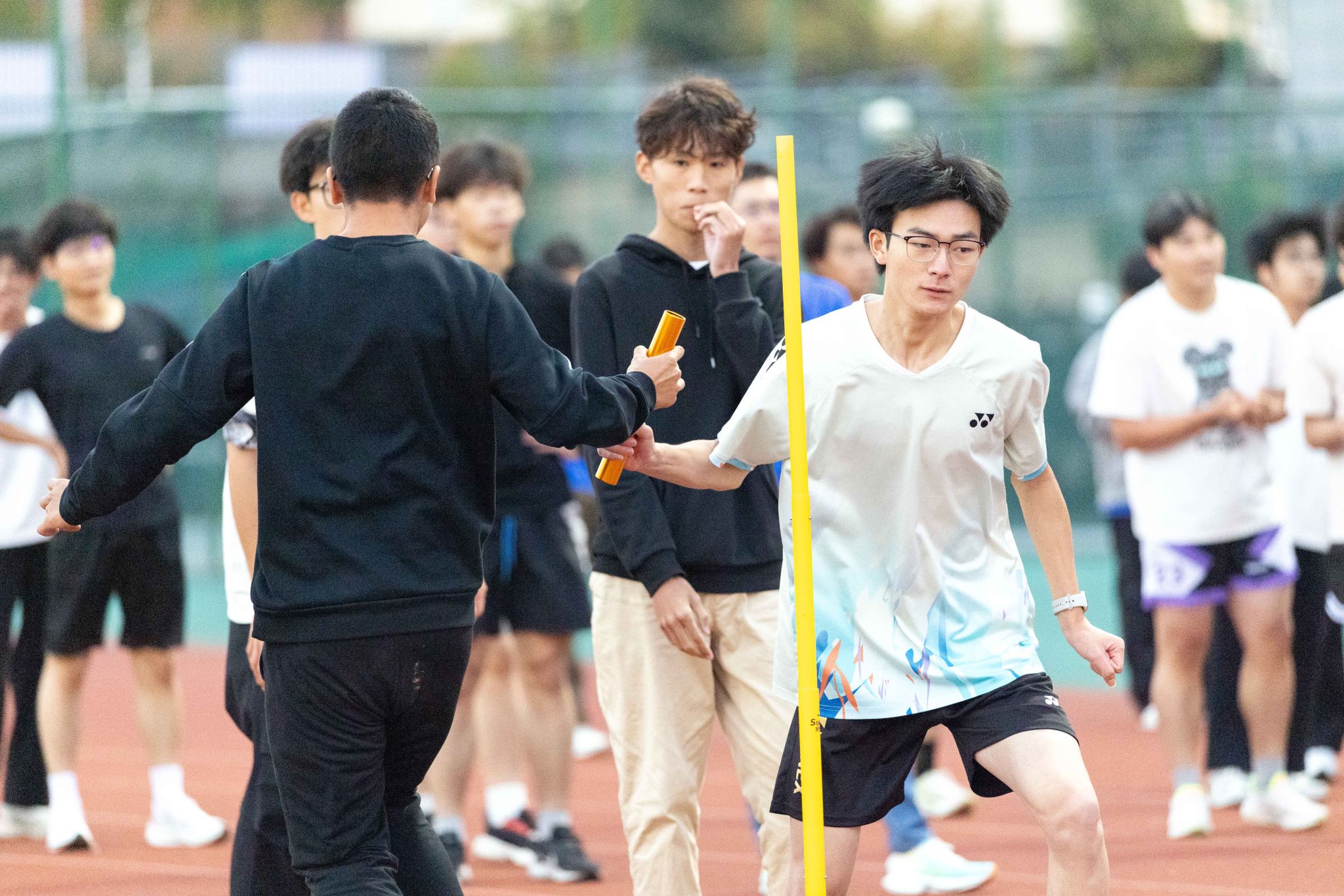 回忆起比赛时的情景,孔子文仍难掩激动。那一刻,他站在交接区外,目光紧紧锁定着奔跑的队友。赛道上,脚步与呼吸的节奏交织成学院的心跳,而他的双手,正准备接过那份属于团队的信任。