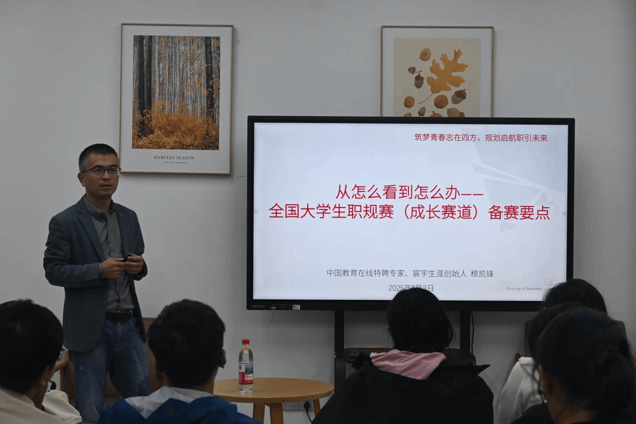 培训最后,穆凯锋分享备赛避坑指南:关注校内赛事信息,避免信息差;客观自我认知,合理使用测评工具;查人社部报告、行业白皮书等权威资料做行业调研;职业规划分阶段,避免“3 年成高管”这类不切实际目标。